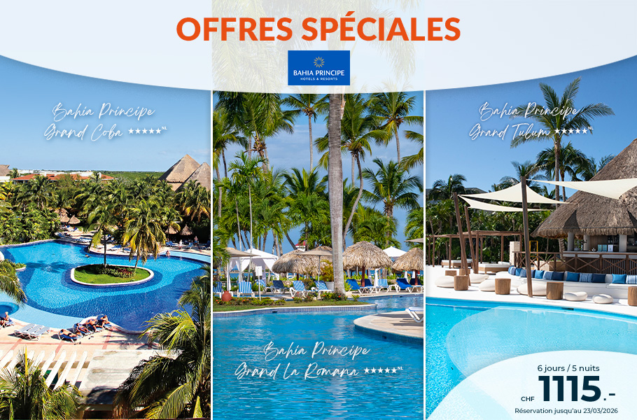 Tahiti & ses îles dans le Pacifique. La Guadeloupe, Martinique, République Dominicaine et St Barth, le Mexique avec Cancun & la Riviera Maya dans les Caraïbes, la Jamaïque et Sainte-Lucie. L’Ile Maurice, la Réunion, les Seychelles, les Maldives, le Sri Lanka, Dubaï dans l'Océan Indien, sans oublier une halte à Zanzibar. Découvrez les plus grandes chaînes hôtelières dont Sandals, Palladium, Bahia Principe...