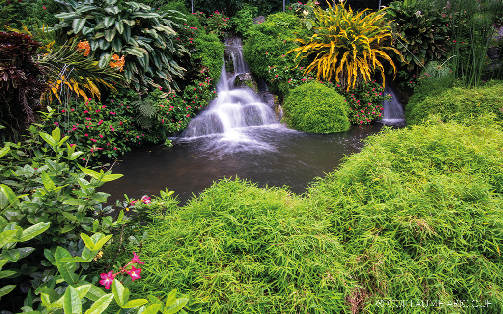 À l’entrée, l’étang aux nénuphars accueille des carpes koï. Plus loin, près d’une cascade de 10 mètres, des flamants roses venus de Cuba évoluent dans un décor tropical.